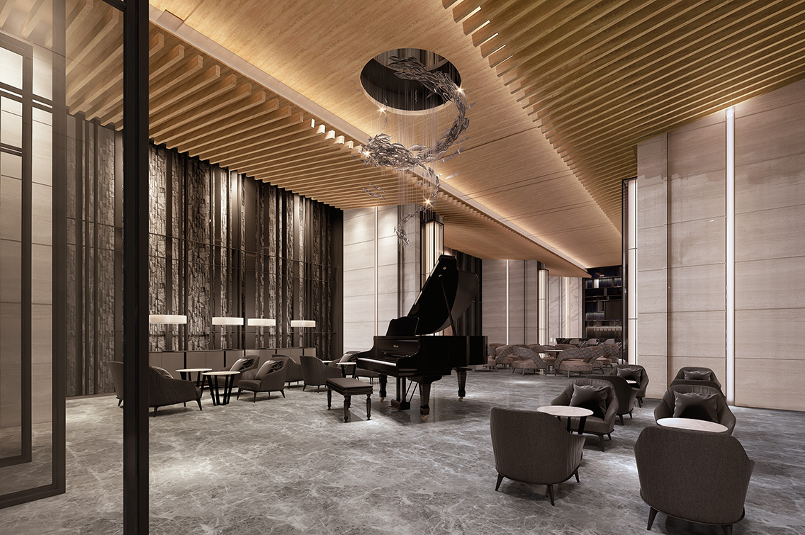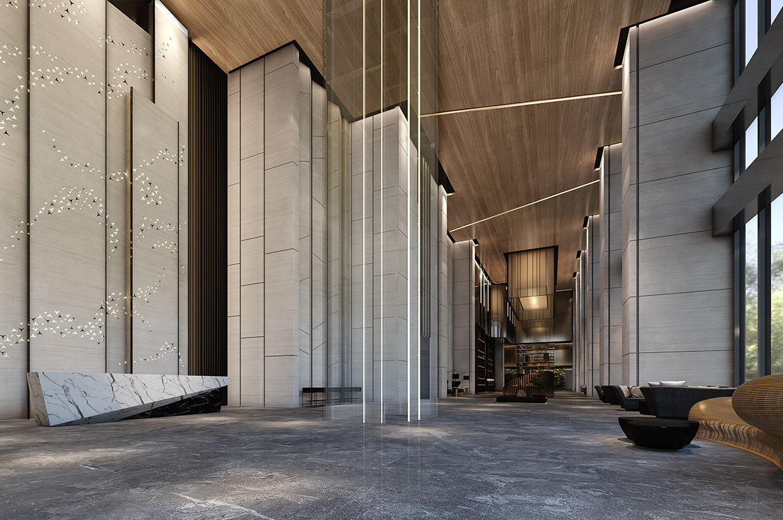 挑高10米千紙鶴原石門廳 3D示意參考圖